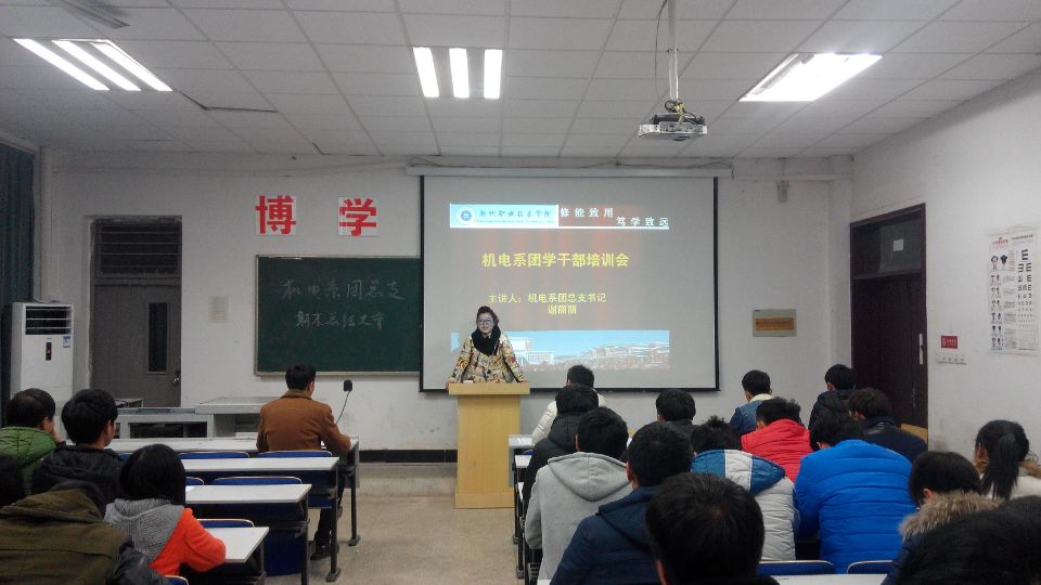 1月7号下午4点由awc777万象城娱乐官网机电工程系团总支开展期末学习总结大会。在5102教室顺利举行,本次大会上,机电工程系团总支负责人谢丽丽老师出席了此次总结大会,同时参加此次活动的还有团总支、学生会、系部所属社团以及机电系各团支部成员。