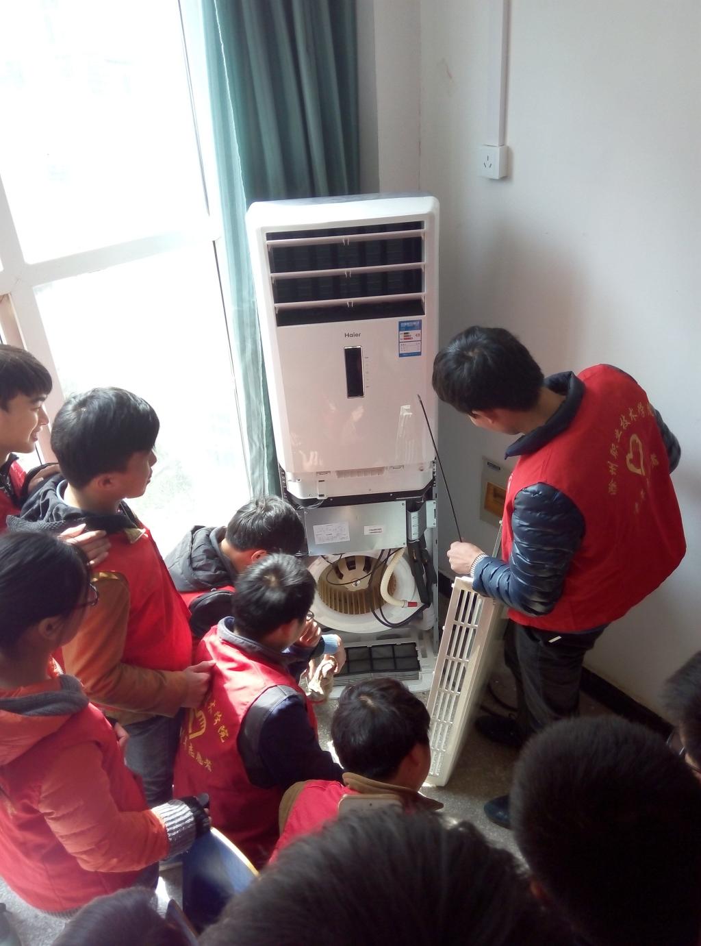 为贯彻院团委下发的“传承雷锋精神,深化志愿服务”为主题的志愿服务系列活动的通知以及相关精神,在机电系团总支的组织下,机电系13级、14级20名制冷与空调技术专业的学生,结合自己的专业知识,发挥专业技能,学以致用,为5号楼教室的空调内机做了一次清洗和保养。经过一个冬天的使用,教室里新安装的空调也该好好保养保养了!制冷专业的志愿者们在学长的带领下小心翼翼的对教室内的空调进行清洗和保养。经过一个中午的辛勤劳动,5号楼内的空调内机里的脏东西被我们的志愿者们清理干净了。