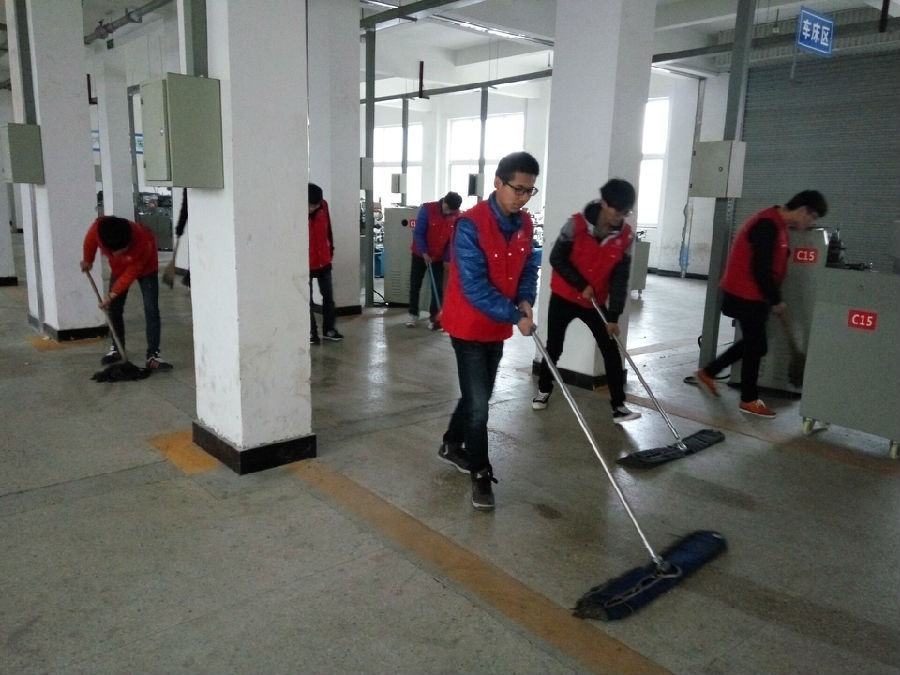 为学习和弘扬雷锋精神,继续推动志愿服务活动,2016年3月9日机电系15级机电(1)班团支部为实训场地进行义务清扫。