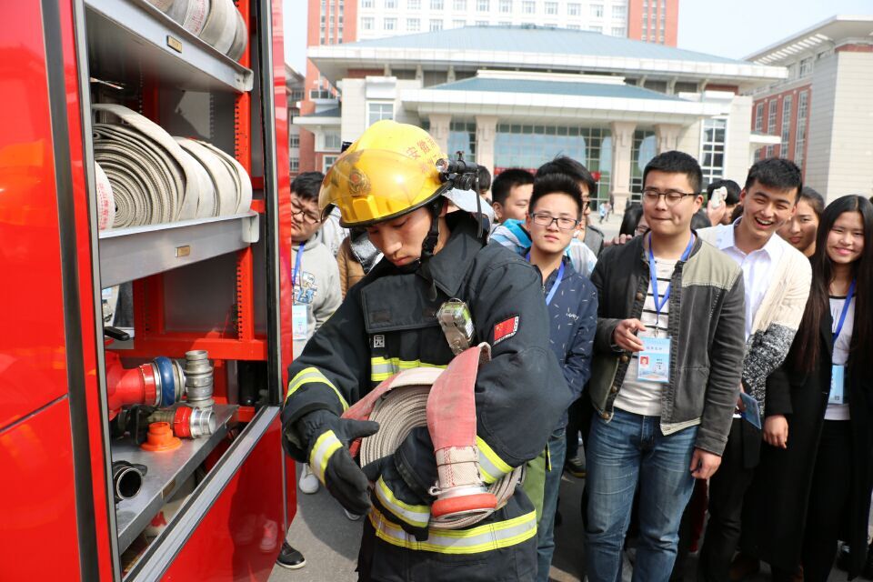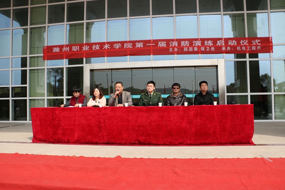 为进一步加强学生的消防安全意识,提高学生的防灾避险自救能力。2016年3月23日下午两点,由院团委、保卫处主办,机电系承办的第一届消防演练启动仪式在大礼堂西门举行。参加此次活动的有滁州市开发区消防大队参谋王海洋、机电系党总支书记晋太洋、院团委书记王蓓蓓、院保卫处处长贺建邺等。