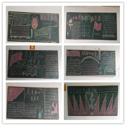 各班团支部充分利用黑板报这块阵地,发挥自身团队合作的优势,用图文结合的方式表达对十九大召开的喜悦心情,并且在板报中彰显出了不会忘记作为青少年的初心,始终跟随着共产党的脚步一路前进的决心。主题鲜明,充满创意。