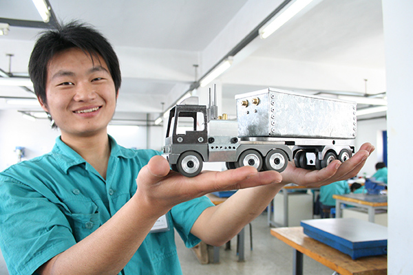 (学生在机械加工车间实训)