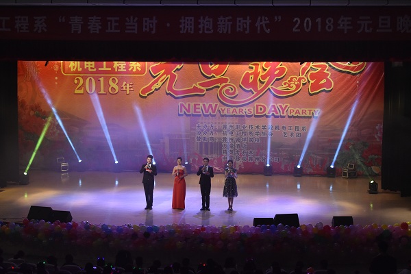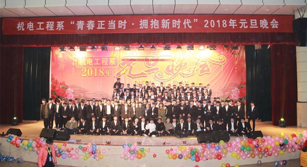 辞旧迎新岁,金鸡引戌狗,在这辞旧迎新之际,2017年12月26日晚六点半,机电工程系“青春正当时,拥抱新时代”2018年元旦晚会在学院大礼堂举办,机电系党总支书记晋太洋、组织人事处师资科科长谢丽丽、汽车工程系团总支书记朱婷婷、院团委组织部部长谭康惠及机电系老师代表与各系同学荟萃一堂,共迎新一年的到来。