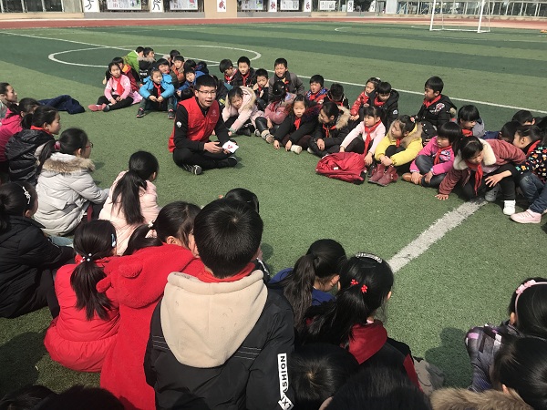 在同学们的热烈欢迎之下,我系志愿者首先向大家发放了制作好的“雷锋故事卡”:正面是雷锋同志的形象,背面是雷锋简介或故事。同学们坐在操场上,认真听志愿者讲述了雷锋的光荣事迹。同学们在听完雷锋故事后,纷纷表示也要向雷锋同志学习,从身边小事做起。志愿者们鼓励他们要努力学习,争做雷锋的接班人。最后大家合影留念。