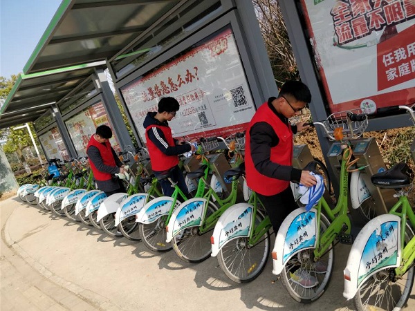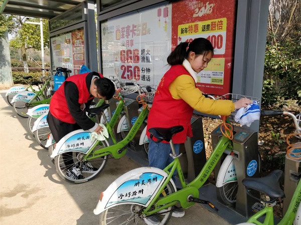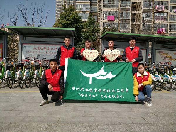 为了更好的体现新时代雷锋精神,机电系“醉美亭城”志愿者服务队于2018年3月10日上午对滁州市部门站点的公共自行车进行义务清理维护活动。