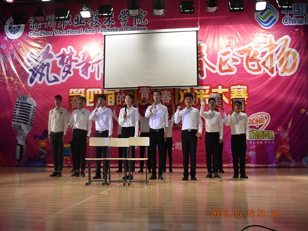 比赛共分为三个环节:知识竞赛、风采展示、才艺展示。今晚的比赛内容是风采展示和才艺展示。17机电(2)班团支书何涛和17机电(4)班团支书王雪晨通过ppt的形式展示各自团支部成立以来的建设成果、特色团日活动等;随后,17机电(2)班团支部通过《少年强》杯子舞展现了团支部的凝聚力;17机电(4)班则以“奋斗的青春最美丽”情景剧获得学生的共鸣。经过三个环节的综合评比,17机电(4)班团支部凭借优秀的表现以第一名的成绩获得本次比赛一等奖,17机电(2)班获得了三等奖。