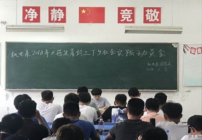 6月5日中午,机电系在5305教室召开2018年大学生暑假三下乡社会实践动员会。机电系团总支书记张文主持会议,全体团学干参加。