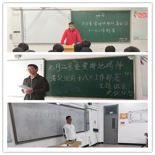 为贯彻学习7.2重要讲话精神落实团十八大部署,机电工程系18级各班于近日召开关于学习“7.2重要讲话精神”的主题班会,班会由各班班长和团支书主持。