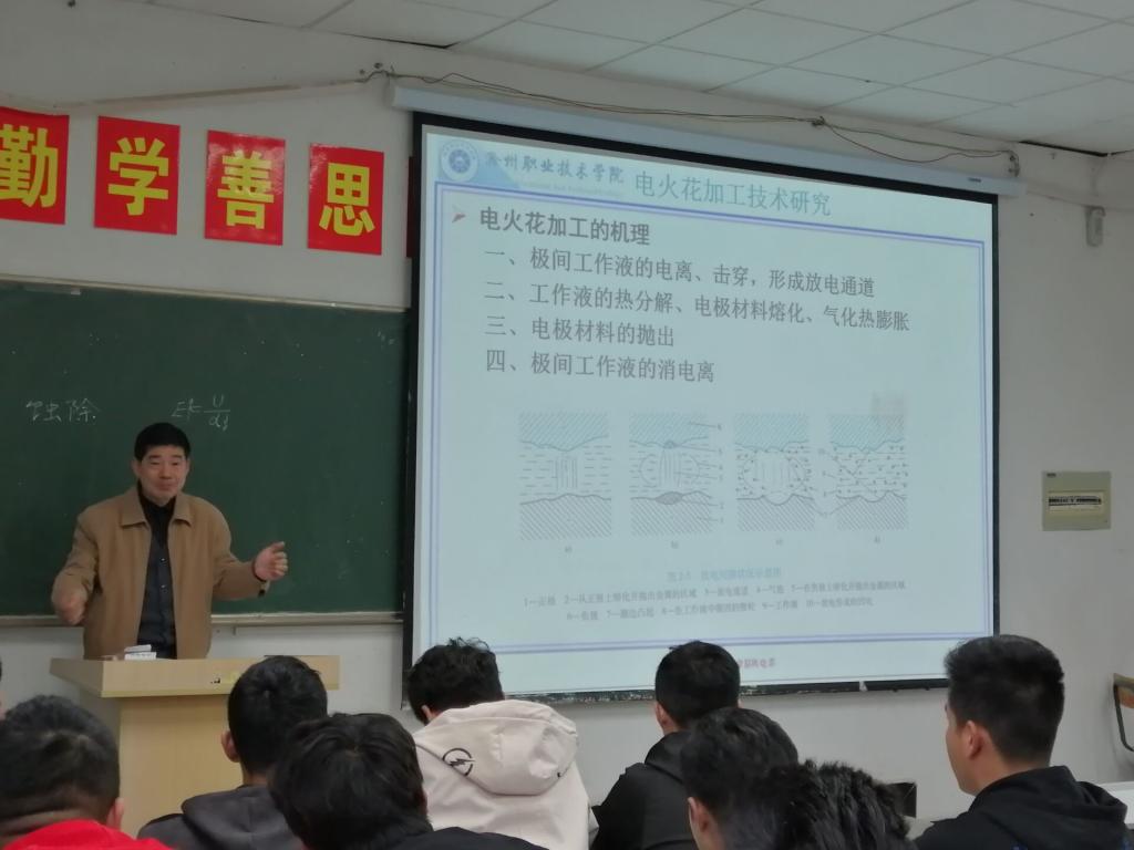 2019年3月20日,机电系杨思国主任在5102多媒体教室举办学术讲座。讲座的题目是:电火花加工技术研究。杨思国主任从电火花加工方法的由来开始,深入分析电火花加工的原理和机理,总结电火花加工的基本规律,并对电火花加工用的脉冲电源、自动进给调节系统、电火花加工机床等内容做一般性知识介绍。在17级学生已学的机械切削加工的基础上,拓展了知识,开阔了眼界。