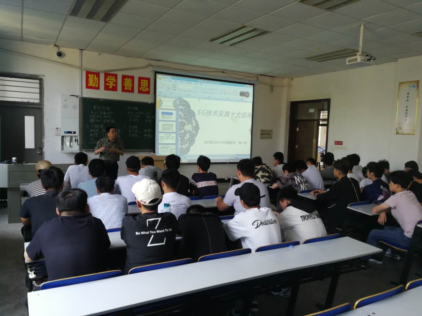 2019年5月22日上午,awc777万象城娱乐官网副教授程一斌同志为机电工程系作“5G技术及十大应用”学术讲座。他重点介绍了5G技术在云VR/AR、车联网、智能制造、智慧能源、无线医疗、无线家庭娱乐、联网无人机、社交网络、个人AI辅助、智慧城市方面的应用及商业模式,以应用案例分析了5G对社会经济发展的引领作用和人类生活方式的深刻影响,进一步拓展了同学们对未来5G技术发展与应用的认识和视野,鼓励同学们“拥抱5G技术、共享美好生活”。