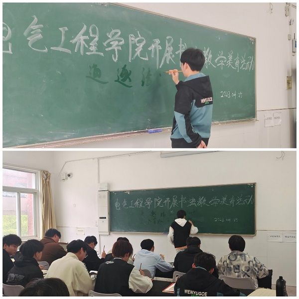 在活动开始之前,由崔文兵,刘靖同学用毛笔在黑板上做文字示范,以直观教学的方式使我院学生初步了解毛笔的使用方法以及文字的书写技巧。教学完成后,参加活动的学生们纷纷用毛笔在纸上进行文字的书写。活动中,所有学生积极参与,热情创作,充分发挥自己的兴趣爱好,每一位同学都书写出自己独特的风格。与此同时,一些同学对于陌生困难的笔画也向刘靖、崔文兵请教,整个过程中充分体现出我院学子对于书法的兴趣以及学习的积极性。活动最后,同学们都完成了自己的书法创作,虽然每一个作品都有自己独特的风格,但都充分的体现了每个学生的创作激情和对于书法的不同理解,在一定程度上提高了书法的创作技巧和水平。