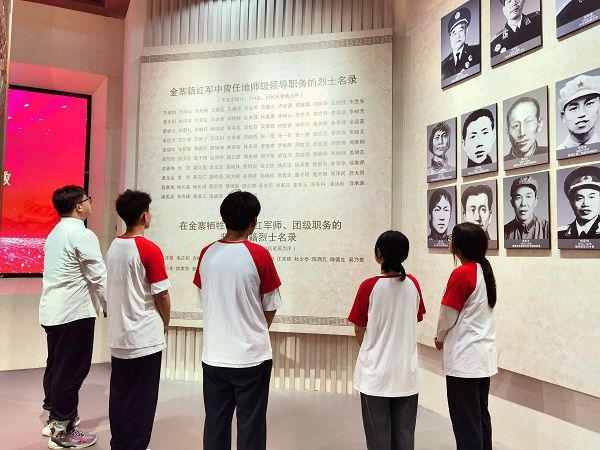 本次社会实践由我院团总支负责人臧铭、专职辅导员朱兰芳老师带队,旨在向革命烈士表达崇敬之情,缅怀红军先烈的英勇事迹,增强青年学子党史学习教育。实践团首先来到金寨革命烈士纪念塔前,该塔建于1960年,塔高24米,塔身正面镌刻着刘伯承元帅题写的“燎原星火”四个镀金大字。“红延”实践团在广场上庄重肃穆的列队,深刻体会红军的壮丽事迹和英勇战斗精神。随后,组织青年学子前往革命烈士纪念堂,通过参观纪念堂内革命烈士的英勇事迹,了解红军的艰苦奋斗历程和不屈不挠的精神风貌,共同见证中国革命历史的峥嵘岁月。青年学子们与红色时代同频共振,深切体会、感悟红军的伟大和无私奉献的精神。