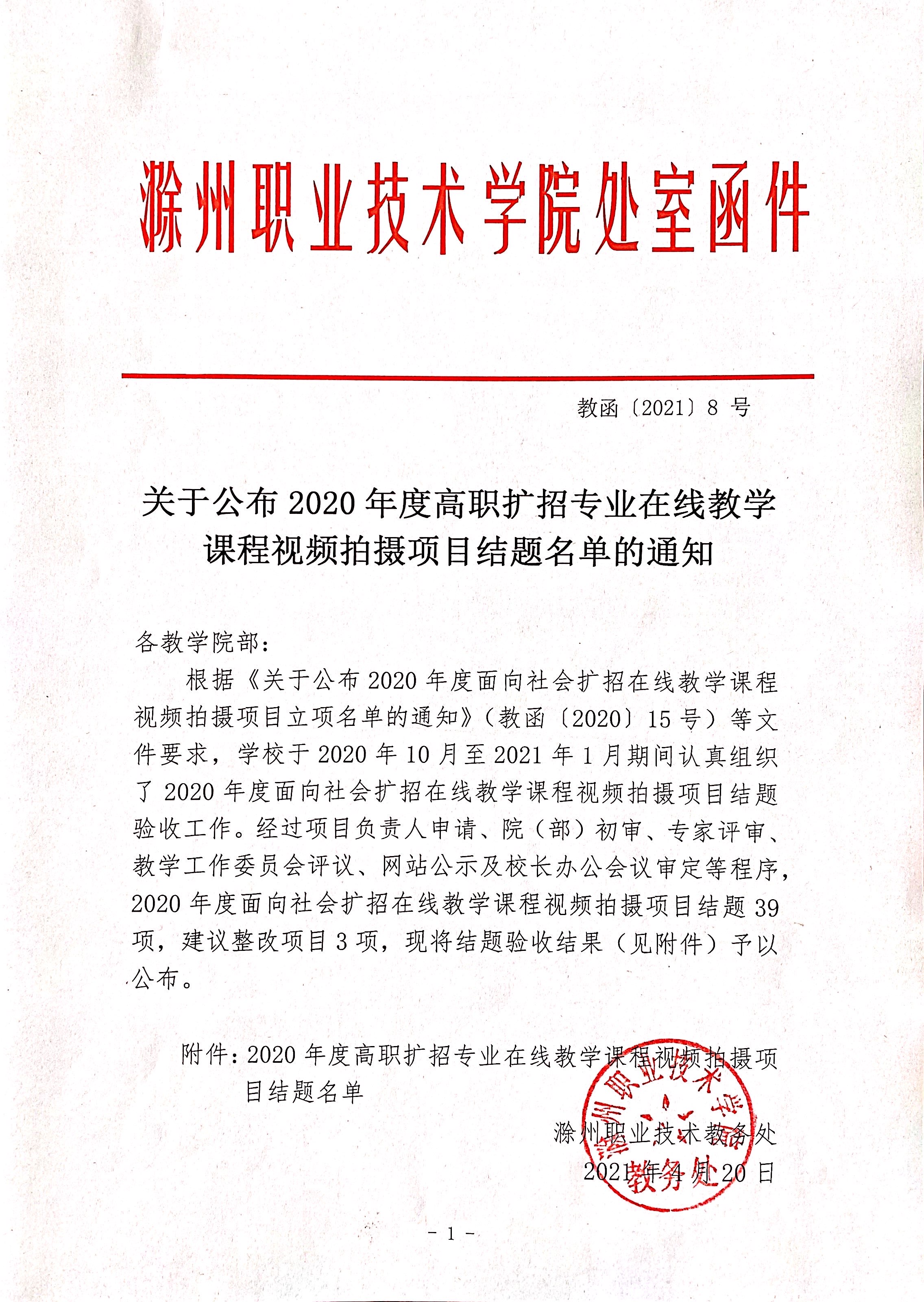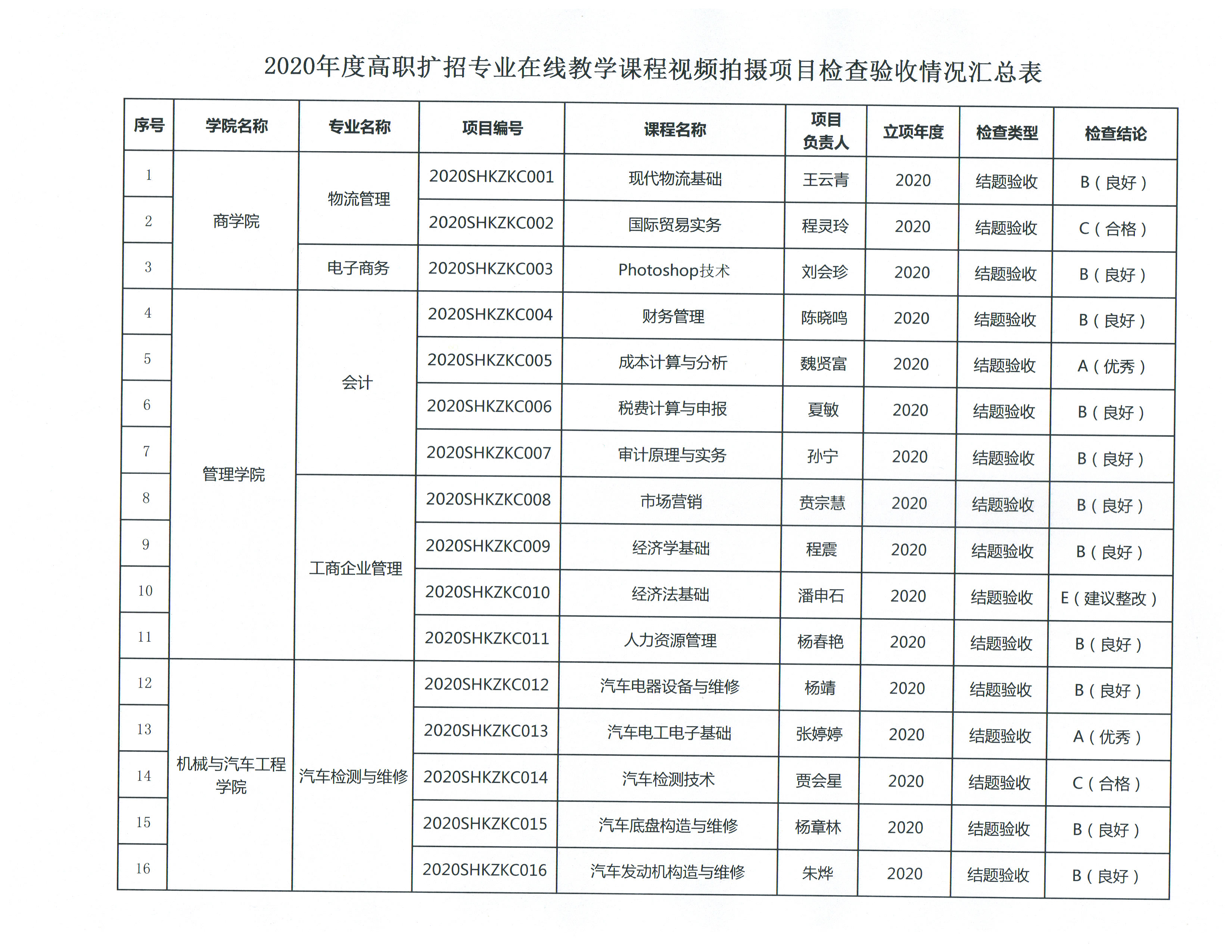 关于公布2020年度高职扩招专业在线教学课程视频拍摄项目结题名单的通知