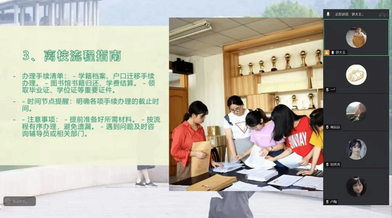 此次线上主题活动既强化了毕业生文明离校的意识,又增进了师生情谊,为毕业生的校园生活画上圆满句号。未来,商学院将持续深化毕业生离校教育,助力毕业生在新征程中践行初心使命,绽放青春光彩。
