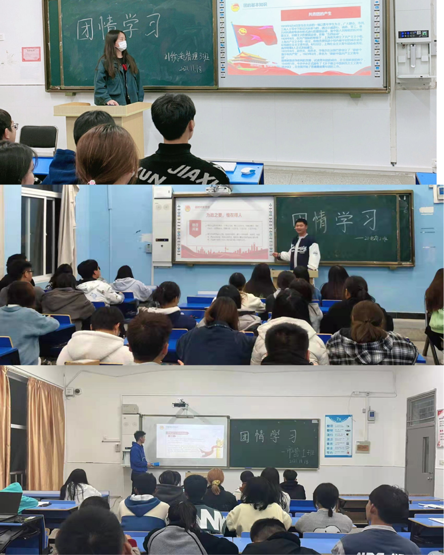 为进一步落实《高校共青团改革实施方案》,加强基层团组织建设,规范团籍管理,强化我院新生团员意识,充分发挥团组织在思想教育中的重要作用,我院团总支组织部于11月18日指导团支书们在各班开展“四个一”团员意识教育之团情学习活动。
