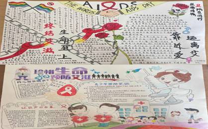 活动中,学生们通过上网、图书室查阅、老师指导等不同形式,围绕“世界艾滋病日”主题,制作出图文并茂的“有爱更温暖,无'艾'更健康”手抄报。通过手抄报展示,进行艾滋病防治科普知识宣传,让学生了解基本的预防艾滋病的知识,培养健康的生活方式和科学的生活态度,强化他们关爱、扶助艾滋病人的社会责任感。引导广大学生树立起正确的认识,做到不歧视艾滋病人,相反更应给予他们更多的关爱。