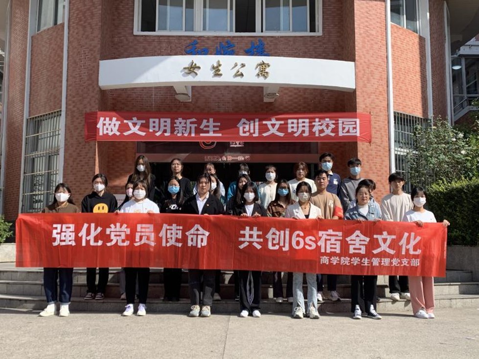 为更好地推动“6S宿舍”的创建,营造积极向上、团结友爱的宿舍环境,发挥学生党员的先锋模范作用,商学院学生管理党支部于10月23日开展了“强化党员使命,共创6S宿舍文化” 活动。本次活动由支部书记赵莹带队,学生预备党员、21级入党积极分子以及22级生活委员一起深入宿舍参观学习。