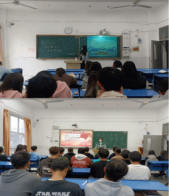 本次活动各班级通过幻灯片演示讲党史、党的二十大知识问答、重温入团誓词、共唱团歌使各位同学都参与其中。