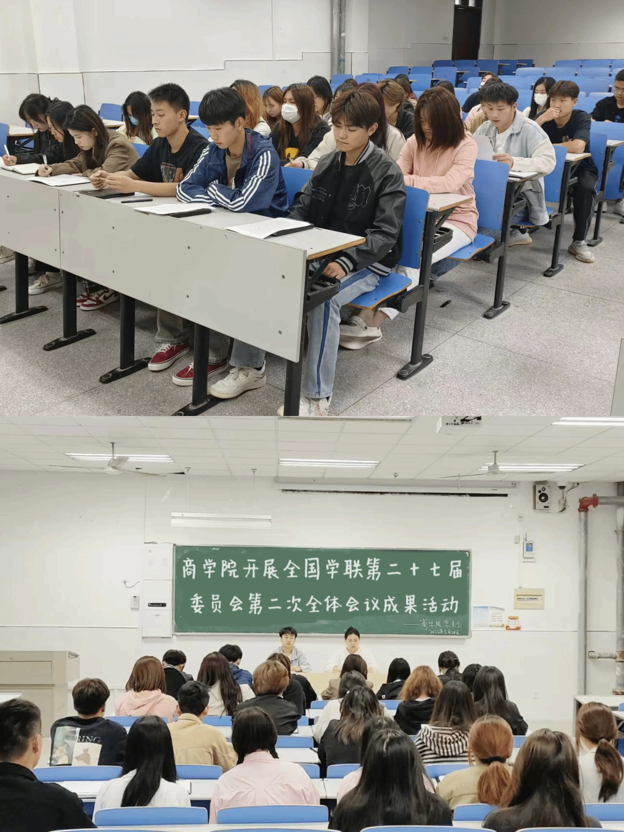 为深入学习落实全国学生联合会第二十七届委员会第二次全体会议成果,认真学习宣传党的二十大精神,全面贯彻落实习近平总书记关于青年工作的重要思想和关于教育的重要论述,商学院学生会于5月24日在致真楼1119开展了学习全国学联第二十七届委员会第二次全体会议成果活动,学生会全体成员参加此次活动。