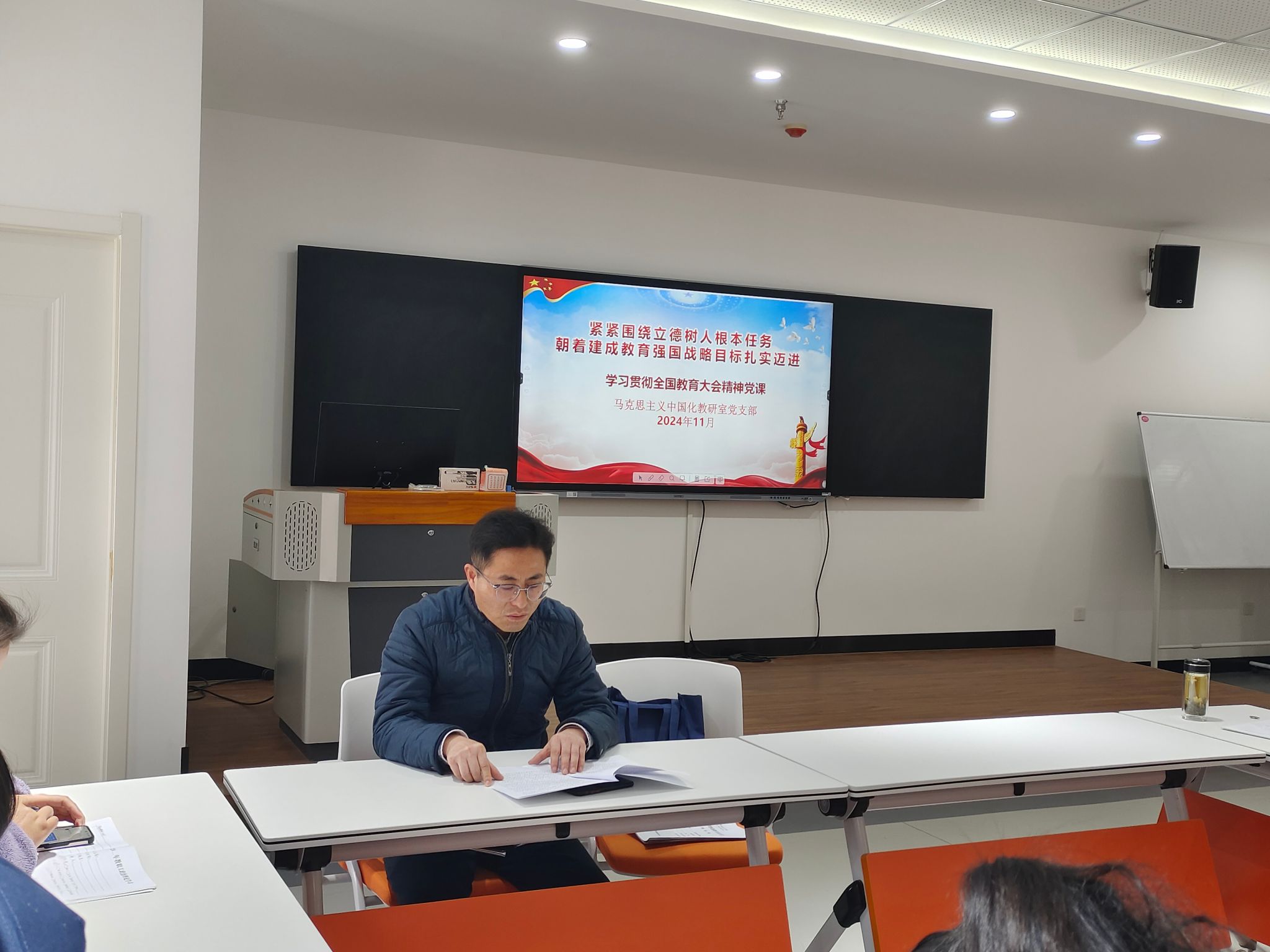 为深入学习贯彻习近平总书记在全国教育大会上的重要讲话精神,11月22日,马克思主义中国化教研室围绕如何贯彻落实讲话精神开展了专题党课。此次党课由支部书记汪立超主讲,马克思主义中国化教研室党支部全体党员参加。
