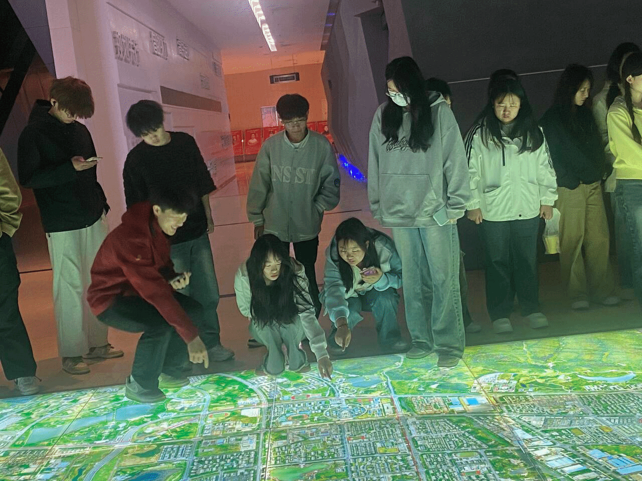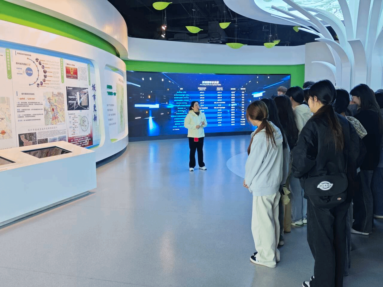 在参观过程中,张家莉老师在“城市更新”主题展厅以城市更新规划的三层次:老城区的顶层设计、示范区的示范引领、城镇过渡片区的完善补充找差异、探新路、做补充,模式推广辐射滁州全市区13398平方千米的滁城改造。讲解过程中,同学们感受到城市更新行动取得明显进展,滁州实现了一年启动建设,两年初见成效,五年展示展现新貌。城市更新统筹规划机制、配套制度、政策体系和可持续模式初步形成,人民群众获得感、幸福感、安全感明显增强,展现山水一体、澄湖相伴的晚江亭城独特魅力张老师还详细介绍了滁州的光伏产业以及滁州经济发展打造长三角一体化建设圈共建共治共享情况,为学生们带来了一场富有思想性、知识性和亲和力的思政课。