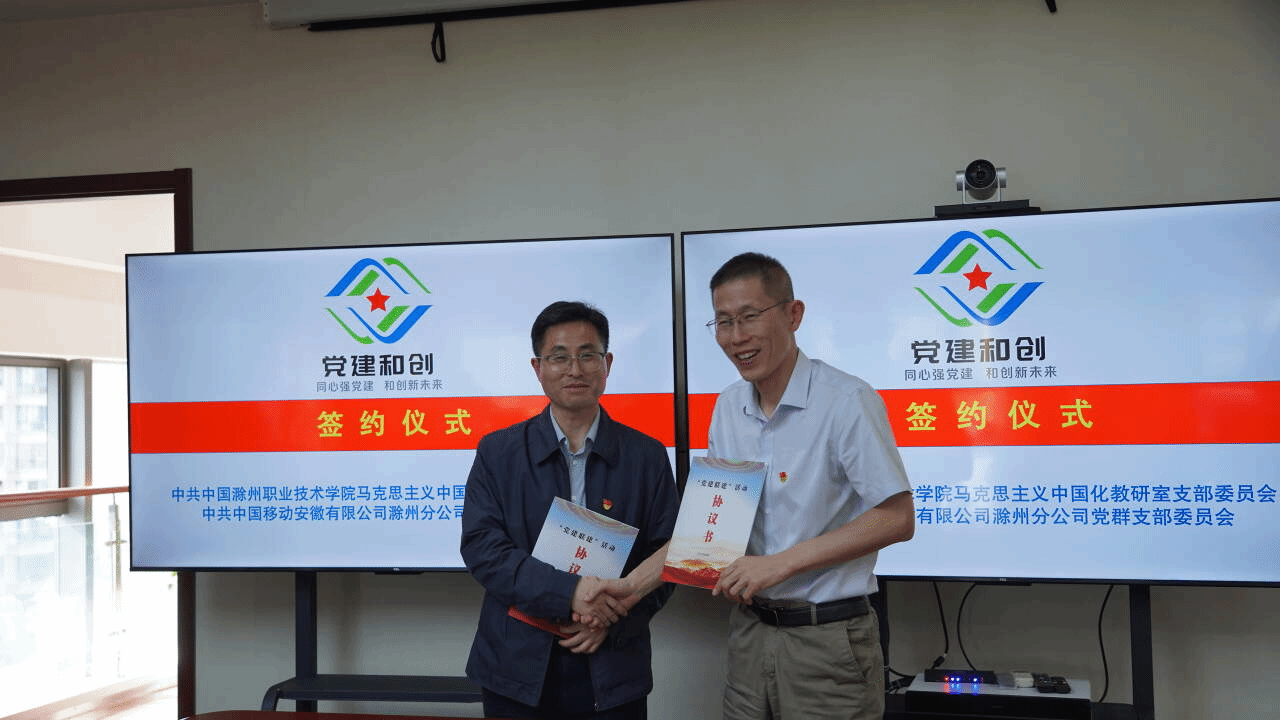 签约仪式上,马克思主义中国化教研室党支部书记汪立超与滁州移动公司党群党支部书记王志国分别介绍了各自党支部的基本情况与党建工作特色,并代表双方签署《“党建和创”活动倡议书》。根据协议,双方将以“资源共享、优势互补、协同创新”为原则,围绕理论共学、组织共建、业务共促、活动共办等方向深化合作,打造“党建+理论+技术”的特色共建模式,推动基层党建与事业发展同频共振。