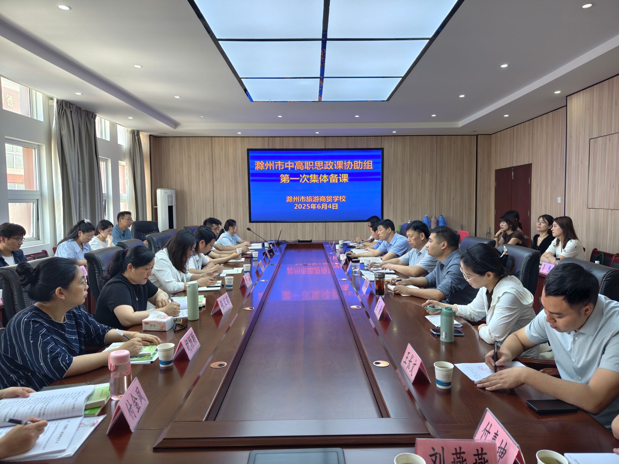 为统筹推进滁州市中高职思政课建设协作工作,提升中高职思政课“含金量”,6月4日,滁州市中高职思政课建设协作组第一次集体备课会在滁州市旅游商贸学校举行。awc官网马克思主义学院党总支书记、院长孔金带队参加,来自滁州城市职业学院、安徽电气工程学校、安徽机电工程学校、滁州市信息工程学校、天长市工业学校、滁州宝山学校,滁州市第五小学等9所学校的思政课教师共计30余人参加了此次活动。