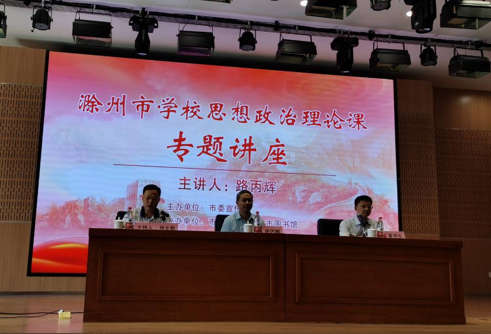 9月7日,按照市委宣传部的安排,马克思主义学院思政理论课专职教师在滁州市图书馆多功能厅聆听全市学校思想政治理论课专题讲座。应滁州市邀请,安徽师范大学马克思主义学院教授、博士生导师,全国模范教师、全国师德标兵、全国最美思政课教师路丙辉作专题讲座。讲座由滁州市委宣传部常务副部长周全教主持,省委宣传部宣教处处长夏捍东与会指导。