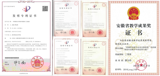 学院教师建设完成安徽省自然科学基金重点项目2项、在研2项;完成“高校学科(专业)拔尖人才学术资助项目”1项;完成高校优秀青年人才支持计划重点项目1项;完成高校国内访学项目1项、在建1项;建设校级工程技术中心一个。在各类科研项目推动下,授权发明专利5件,实用新型专利、外观专利及软件著作权多件,制定国家标准1项。发表一类论文1篇、二类论文1篇、三类论文10余篇。在省级项目的带动下,年轻教师积极申报校级各类科研项目,已完成、在建校级科研项目6项。