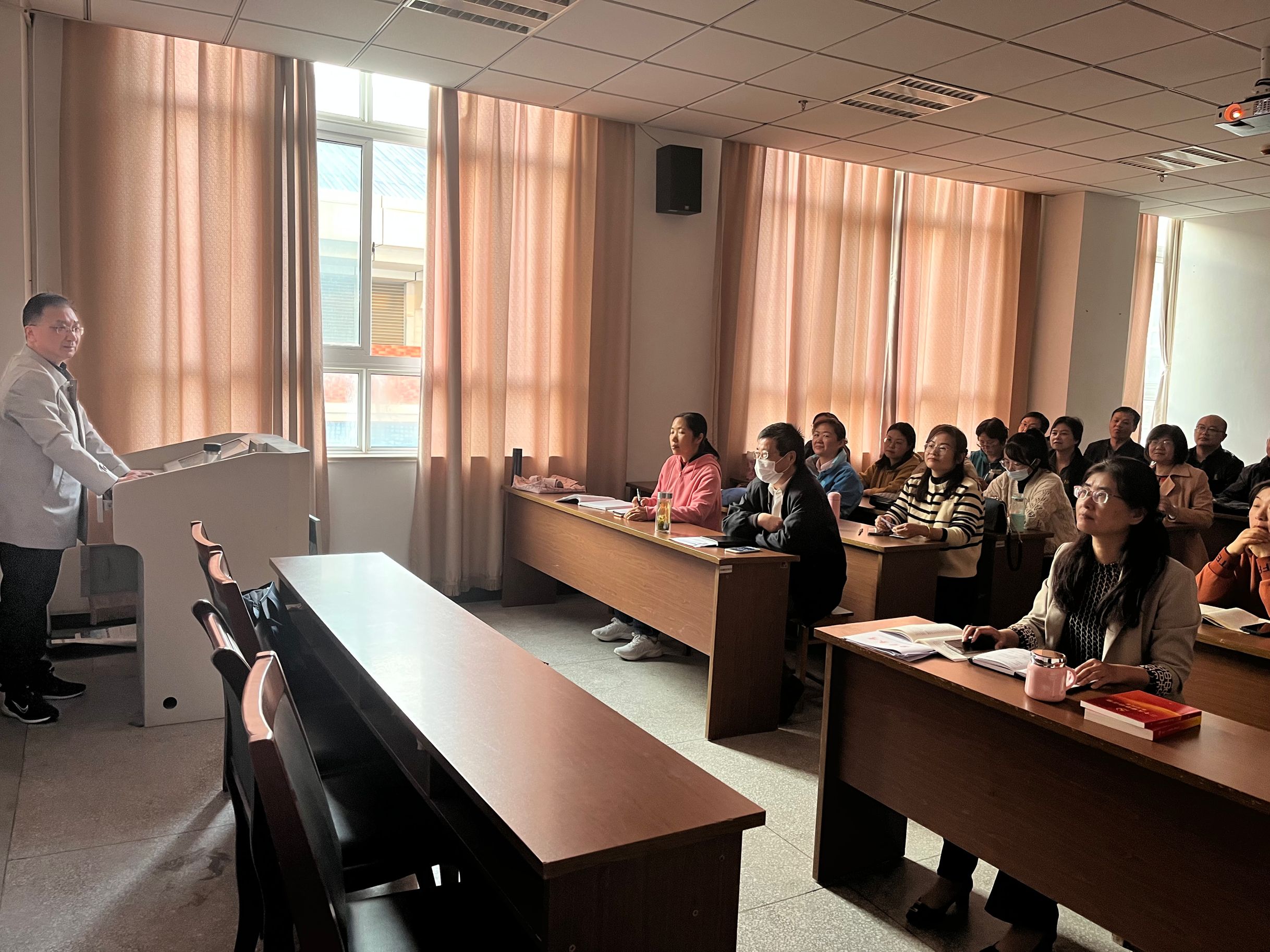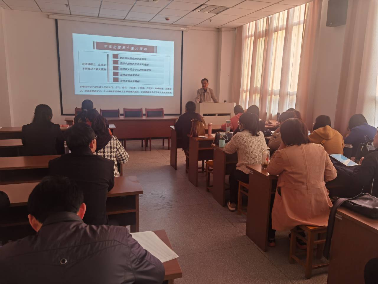 按照学校党委统一部署,11月10日下午,校党委委员、基础教学部主任王冬在综合楼318会议室为基础教学部全体教职工宣讲党的二十大精神。会议由党总支书记林文静主持,全体教职工认真聆听了宣讲。