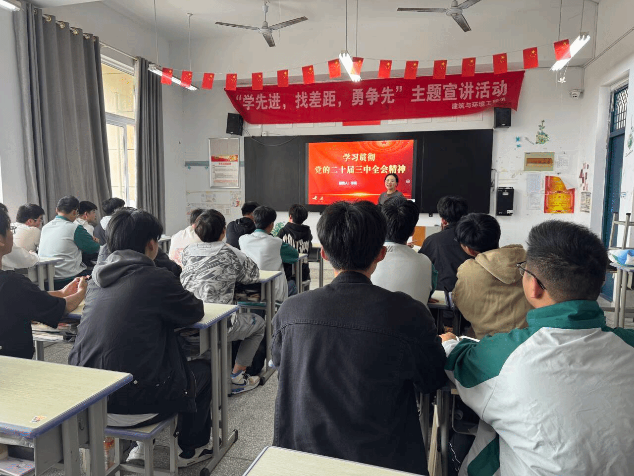 为深入学习宣传贯彻党的二十届三中全会精神,awc777万象城娱乐官网马克思主义学院全体教师组建学校教师宣讲团,走进乡镇、社区、企业、中小学,宣讲党的创新理论,10月22日,李璊老师来到滁州技师学院23高职建工班开展了“举旗帜、送理论”党的二十届三中全会精神宣讲活动。
