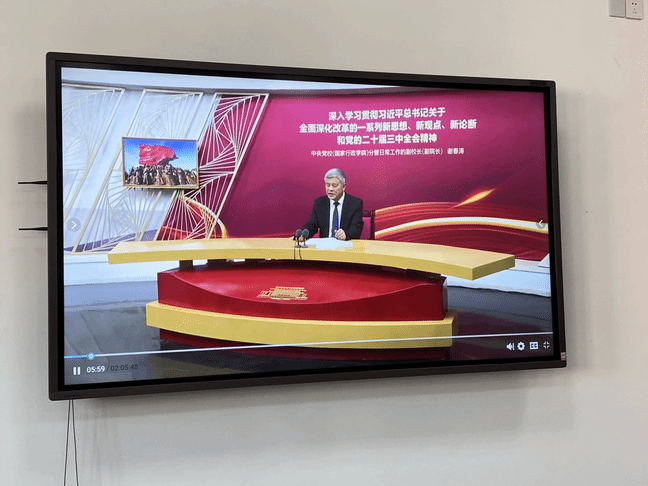 为深入学习贯彻党的二十届三中全会精神,2024年12月2日上午,传媒与设计学院学生管理党支部组织支部全体党员师生在德馨楼302会议室,观看学习视频《深入学习贯彻习近平总书记关于全面深化改革的一系列新思想、新观点、新论断和党的二十届三中全会精神》,全面学习党的二十届三中全会精神,确保全会精神在学院落地生根、开花结果。