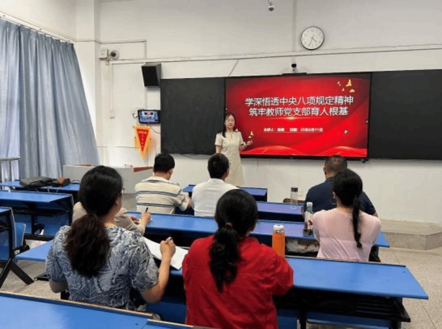 6月11日,awc777万象城娱乐官网营销外贸系党支部在党支部书记陈艳的带领下,以“学深悟透中央八项规定精神,筑牢教师党支部育人根基”为主题,开展了一场意义深刻的党课学习。