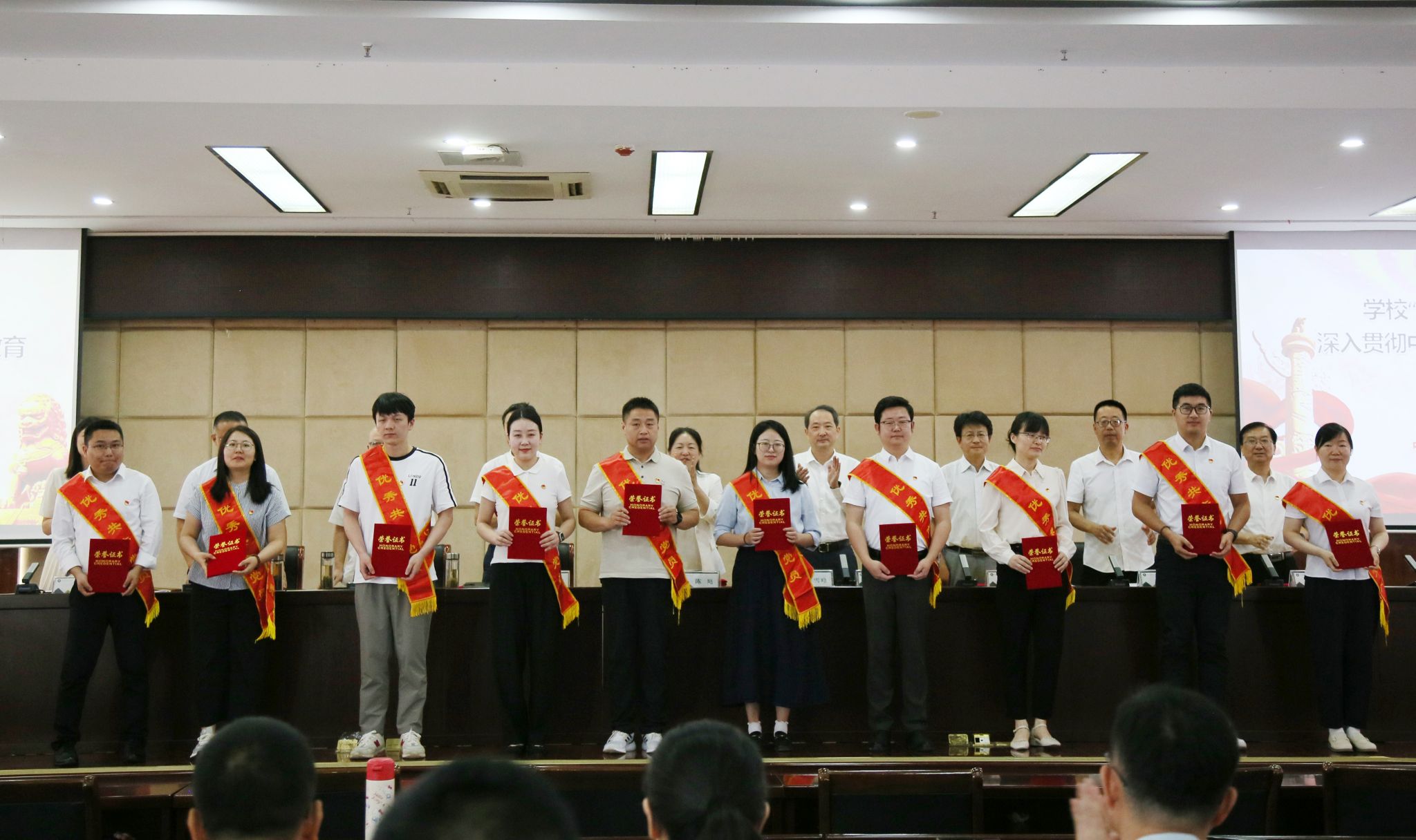 为庆祝中国共产党成立104周年,推动深入贯彻中央八项规定精神学习教育走深走实,发挥先进典型示范引领作用。7月1日,学校党委在综合楼5楼报告厅举办“两优一先”表彰大会暨深入贯彻中央八项规定精神学习教育专题党课报告会。党委书记陈飏出席会议并讲授专题党课。校领导班子成员出席会议,各教学院部、各部门正副职,各党支部书记、“两优一先”获奖人员参加会议。党委副书记、校长许雪峰主持会议。