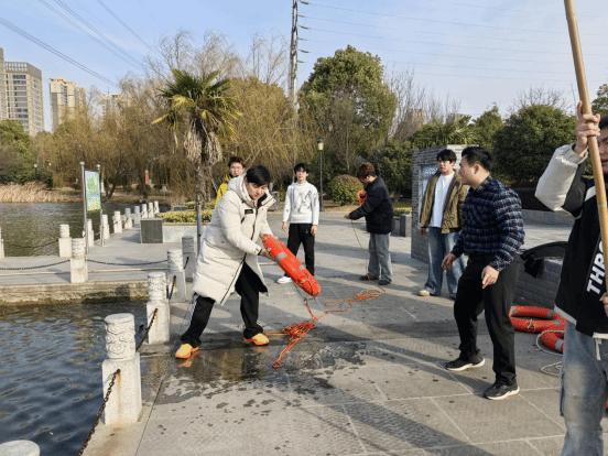 演练结束,工作人员随即带领队员们对水面的固定救生圈、救生杆存放点,逐一细致查看。他们检查救生设备的外观是否破损、性能是否完好。期间,工作人员不时向队员们强调:“这些救生设备是关键时刻的救命稻草,一点小疏忽都可能酿成大错。”经清查,发现个别救生圈、救生绳老化、救生杆缺失,均已详细记录,后续将及时更新、补充。