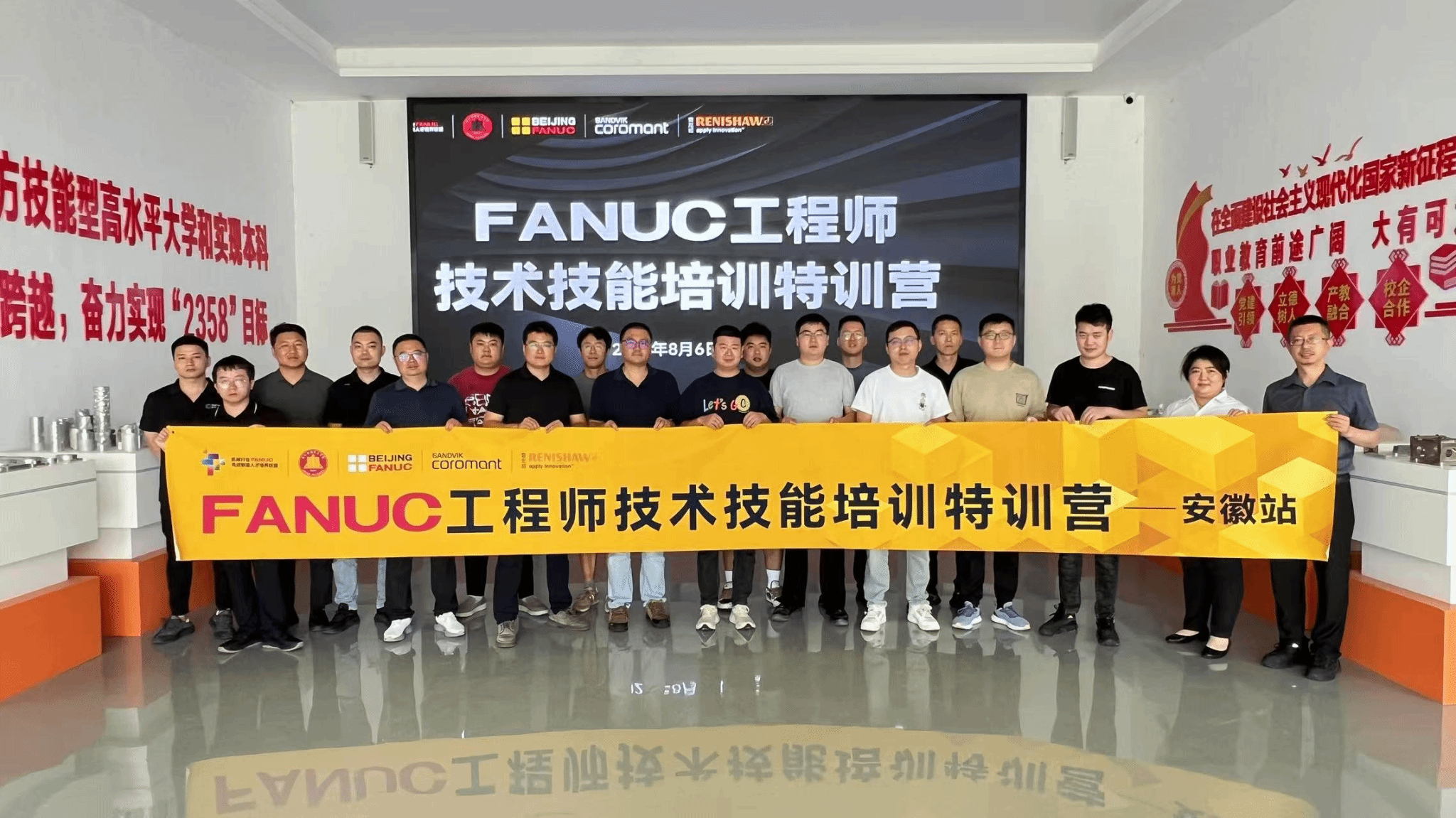 为服务滁州市域先进制造企业,特别是新能源汽车零配件生产企业,进一步提升企业职工的技术技能水平,awc官网与北京发那科机电有限公司展开合作。于8月6日至7日,在智能制造实训基地共同举办了FANUC工程师技术技能特训营。此次特训营采用小班制教学模式,吸引了12家先进制造企业的18名工程技术人员参加。