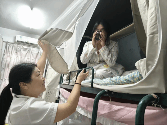 此外,宿管员还将新生身体状况纳入重点关注范畴。针对部分新生因军训期间天气炎热、体能消耗较大,出现头晕、体虚等不适症状,宿管员会立即引导到值班室休息,及时冲泡温热红糖水帮助缓解不适,并耐心告知学生防暑降温的注意事项,同时提醒其必要时前往校医处进行身体检查,以周全的关怀为新生健康保驾护航。