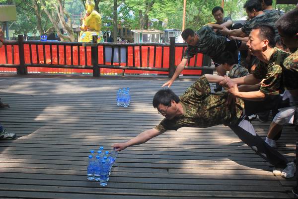 活动当天,虽然天气炎热,但是全体参训党员都以一种积极的心态,认真对待训练。在训练师的精心组织下,全体同志不怕苦、不怕累、团结一心,敢于面对挑战、勇于挑战自我,努力克服恐惧等心理障碍,先后圆满完成了群龙取水、信任背摔、攀岩断桥等训练项目。