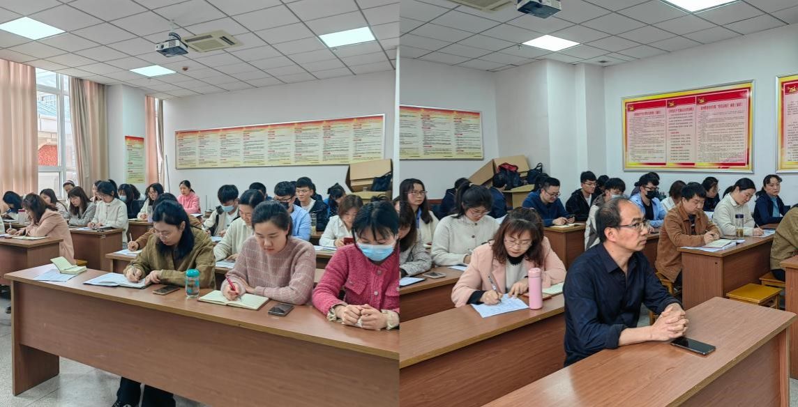 汤主任向全体教师详细通报了基础教学部一季度“双高校”建设工作:语音室升级改造学校省级“双高计划”重点建设项目已进入招投标阶段;已赴上海、江苏和安徽三所院校考察学习,落实学校“双对标”工作;联络了华中师范大学、东南大学和安徽师范大学三位数学方向博士,其中一位已来校交流并明确了意向;成功举办三场“大师进校园”专题讲座,涉及师德师风、教科研和规划教材建设;人文素养教研室教师获省级教师教学能力参赛资格,英语教研室“英语口语”师生同赛入围2024年全国职业院校技能大赛集训选拔赛队伍。