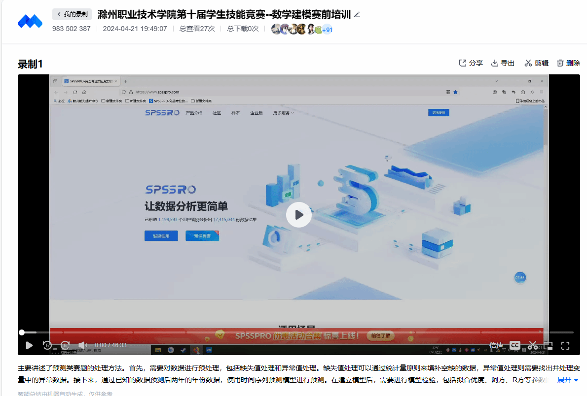 此次线上培训的成功举办,不仅为参赛同学们提供了一个宝贵的学习交流平台,也为学校在数学建模领域的发展注入了新的活力。相信在学校师生们的共同努力下,awc777万象城娱乐官网的数学建模竞赛一定会取得更加优异的成绩。