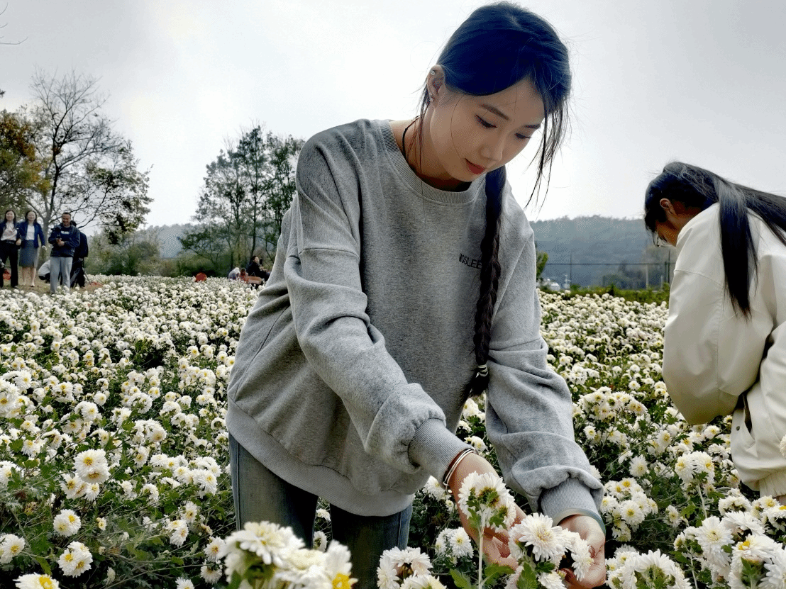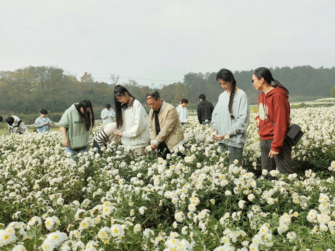 “采菊东篱下,悠然见南山”。 11月13日,初冬时分,在位于江淮分水岭两侧的安徽省滁州市南谯区大柳镇awc777万象城娱乐官网校外劳动实践基地内,一朵朵菊花竞相绽放。此时正值滁菊头花的采摘期,一缕缕淡雅的清香随风入鼻,沁人心脾。师生们在全国劳动模范、滁菊研究所所长龚建国和安徽省劳动模范、滁菊研究所副所长刘晓翠的带领下穿梭于花海中,娴熟地采收滁菊。
