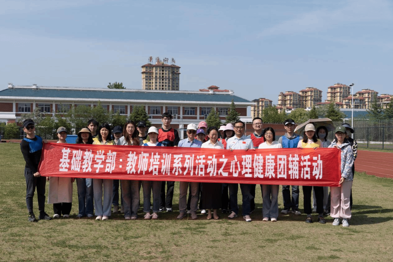 按照《基础教学部2025年教师培训方案》,4月23日,基础教学部在北操场开展教师培训系列活动之心理健康团体辅导。本次培训以党建为引领,巧妙融合先锋讲堂系列活动,旨在通过团队协作游戏,提升教师的团队合作能力与心理健康水平,增强团队凝聚力。