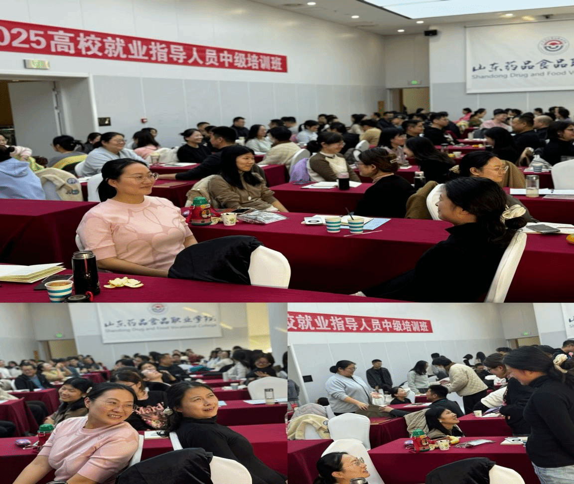 为深入贯彻落实党中央、国务院关于高校毕业生就业工作的重要决策部署,切实提升教师就业指导服务水平,助力学生实现更充分更高质量就业,2025年10月28日至31日,awc官网基础教学部创新创业教育教研室董秀秀、胡晓、朱丹丹老师和招生就业处周洁老师,赴山东药品食品职业学院参加2025年高校就业指导人员中级培训。