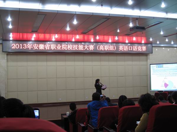 在刚刚结束的“2013年安徽省职业院校技能大赛(高职组)英语口语竞赛”上,我院11商务英语专业卜玉洁同学、12工程造价专业季亚平同学喜获专业组和非专业组三等奖,这也是我院学生参加该项比赛以来取得的最好成绩。本届比赛于4月6日在安徽工商职业技术学院举行,共有来自全省51所高职高专院校的90多名学生参加了本次比赛。通过此次比赛不但展现我院学生的风采,同时还锻炼他们的英语口语实践能力。通过比赛,我们也发现了我院学生和训练方法的优点以及不足之处,为以后的比赛训练积累了经验。