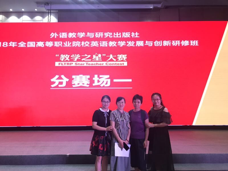7月16日,基础部外语教研室5位教师在教研室主任周婕老师带领下参加了在天津举办的2018年全国高等职业院校英语教学发展与创新研修班暨外研社“教学之星”大赛。来自全国二十多个省市自治区的近千名高职院校骨干教师齐聚津门,与英语教育界的专家、学者一道,共同见证与探讨在新时代下高等职业院校英语教师需要担当的“新使命”、掌握的“新能力”与设计的“新任务”。