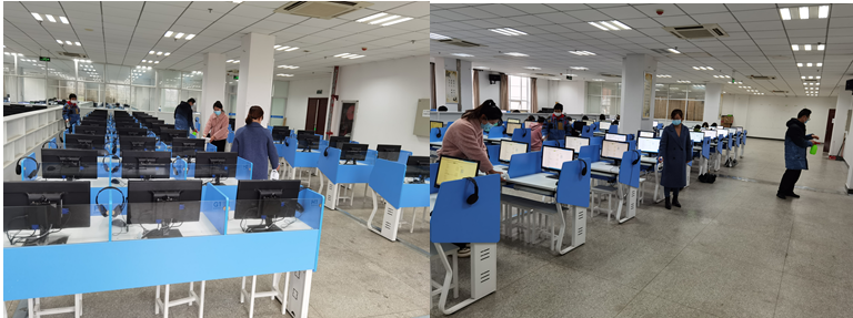 基础教学部目前有六间语音室,承载全校各个学院大一学生的公共英语教学任务,平时上课人员密度较大。各位老师对语音室的空旷处、学生座位处、日常卫生用具摆放处以及窗台栏杆、各墙角处进行了细致的消杀,并每天做好记录。除此之外,加强语音室消防安全管理,排查可能存在的安全隐患,做到人走电断。