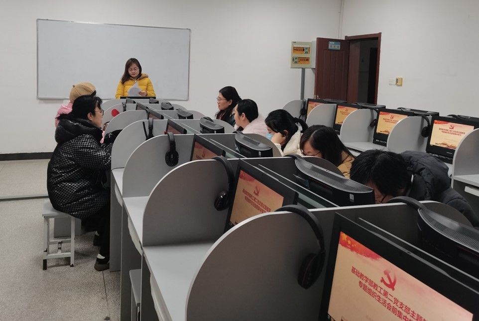 为深入学习贯彻党的二十大精神,开好党支部主题教育专题组织生活会,1月17日下午,基础教学部教工第二党支部在综合楼206开展主题教育专题组织生活会会前集中学习,教工第二党支部全体党员参加集体学习,支部书记冯香丽主持。