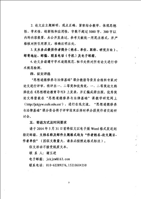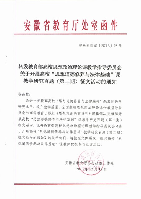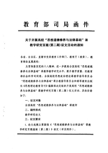 关于开展高校“思想道德修养与法律基础”课教学研究百题(第二期)征文活动的通知