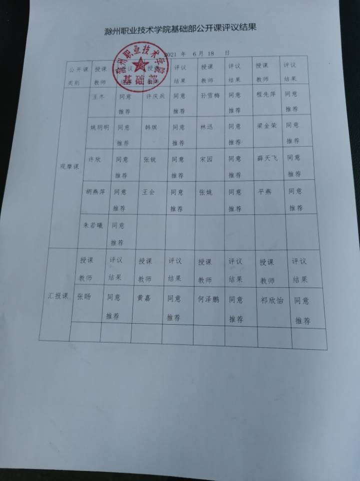 awc777万象城娱乐官网基础部公开课评议结果