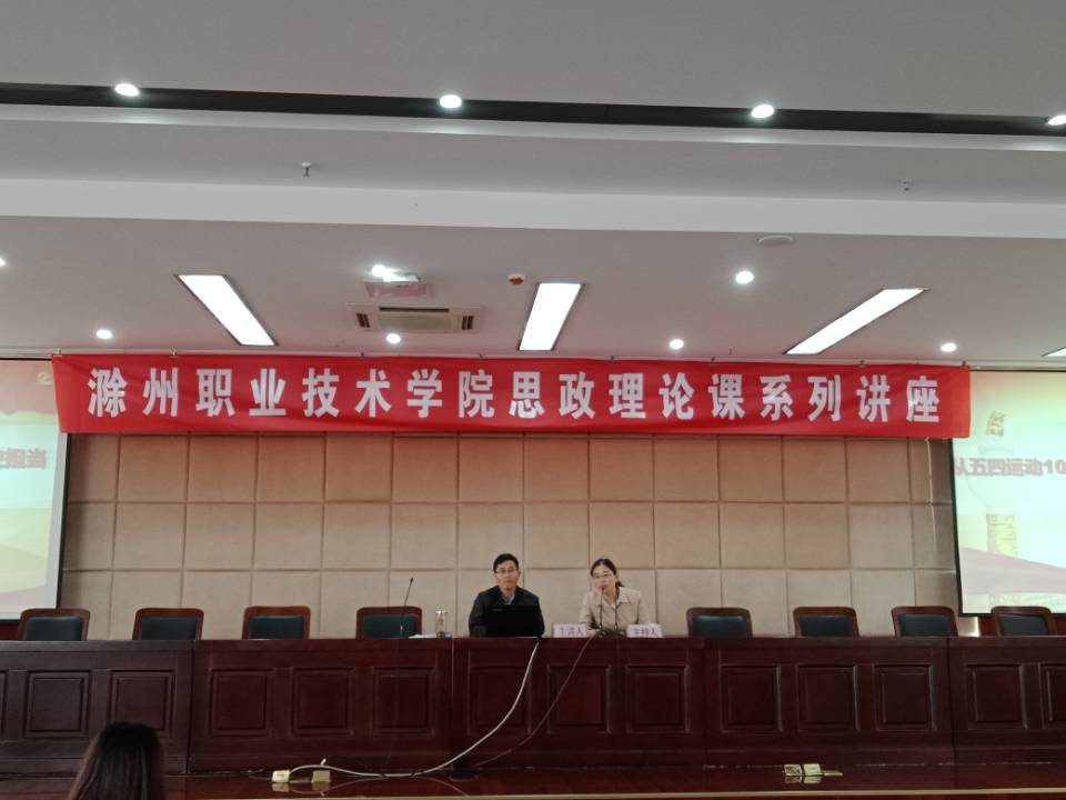 讲座中,汪立超副教授首先从4月30日滁州市委书记张祥安来校调研并就办好思政理论课、纪念五四运动和做有为青年的讲话精神入题展开论述,讲解了五四运动爆发的原因,重温了五四运动的光辉历程;其次从中国近代史的视角,结合中共党史和中国革命史的发展讲述了历史意义及当代价值;最后重点解读了习近平总书记在纪念五四运动100周年大会上重要讲话中的“五四精神”,勉励同学们继续弘扬五四精神,按照总书记的要求做新时代青年,树立远大理想、热爱伟大祖国、担当时代责任、勇于砥砺奋斗、练就过硬本领、锤炼品德修为,不负青春,不负时代使命,用青春之我创造青春之中国,为实现“两个一百年”奋斗目标、实现中华民族伟大复兴的中国梦不懈奋斗。